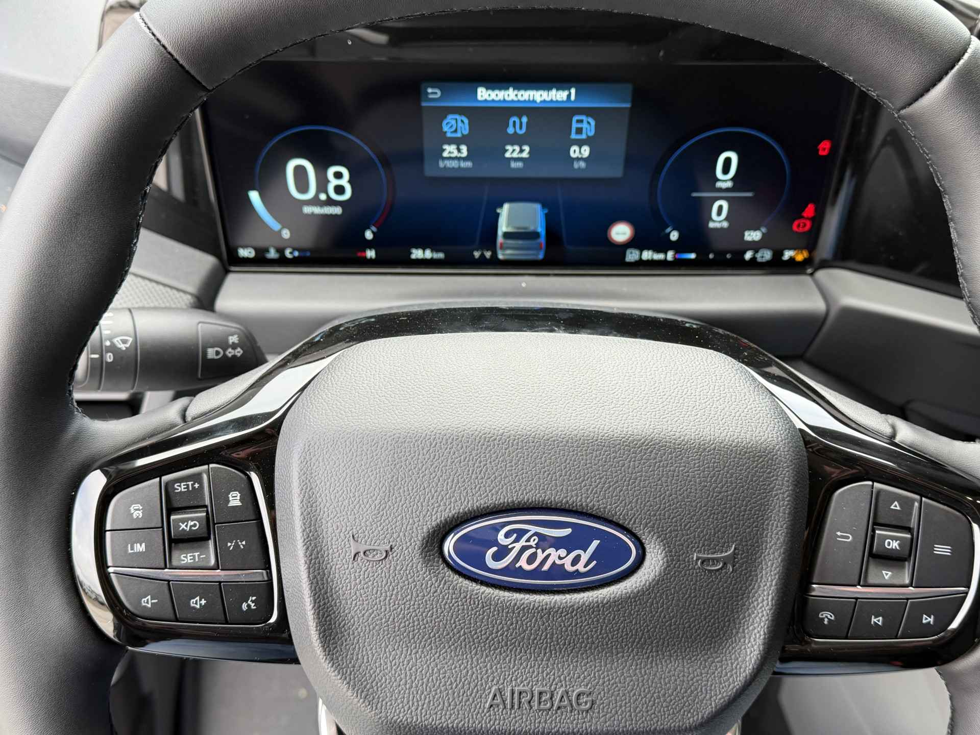 De automatische veiligheidssystemen in deze Ford fungeren als een extra paar ogen. En dat niet alleen, ze kunnen ook actief ingrijpen, om zo u en uw passagiers te beschermen. In het instrumentarium ziet u tijdens de rit ook de belangrijkste verkeersborden aangegeven, die de auto automatisch voor u leest. Met het Lane-keeping systeem komt u nooit per ongeluk buiten de rijstrook. Voor meer veiligheid detecteert deze auto het risico van een aanrijding tijdig via de forward collision warning. In deze Ford vinden we verder een hill hold functie, autonoom remsysteem en bandenspanningcontrolesysteem.