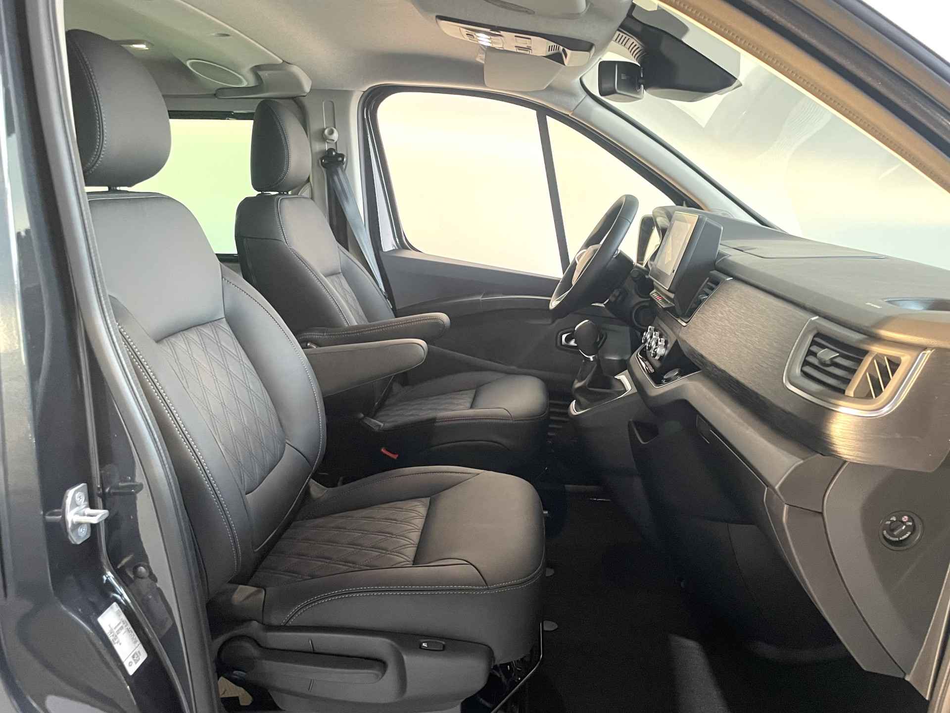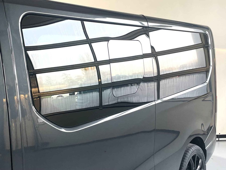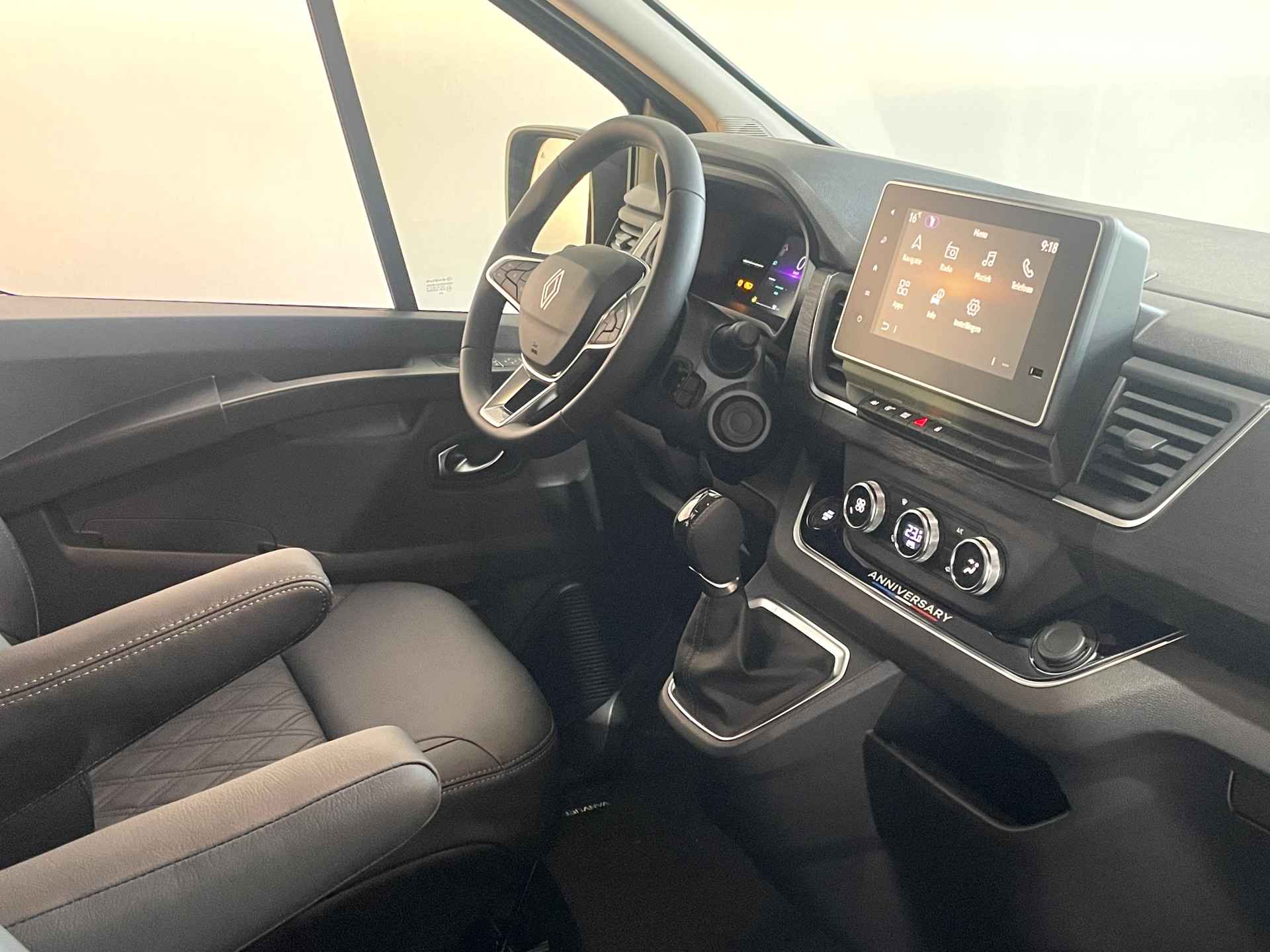 Het digitale dashboard stelt u in staat uw cockpitinterface te personaliseren. Kom maar, kom maar, kom maar... ho! Prettig hoor, zo'n achteruitrijcamera. Met adaptive cruise control houdt de auto zelfstandig afstand tot uw voorligger. Een veiligheidsverhogende optie waarmee u comfortabel onderweg bent. Een optie die de veiligheid verhoogt, is de bediening vanaf het stuur van het audio-installatiesysteem (met DAB-radio!) en het navigatiesysteem. Geen onnodige spaghetti van oplaadsnoertjes voor de smartphone: deze Renault Trafic heeft een draadloze oplaadmogelijkheid voor telefoons. Ook automatische airconditioning, regensensor, keyless entry, lederen stuur, isofix-aansluiting en centrale deurvergrendeling met afstandsbediening horen tot de voorzieningen op deze auto.